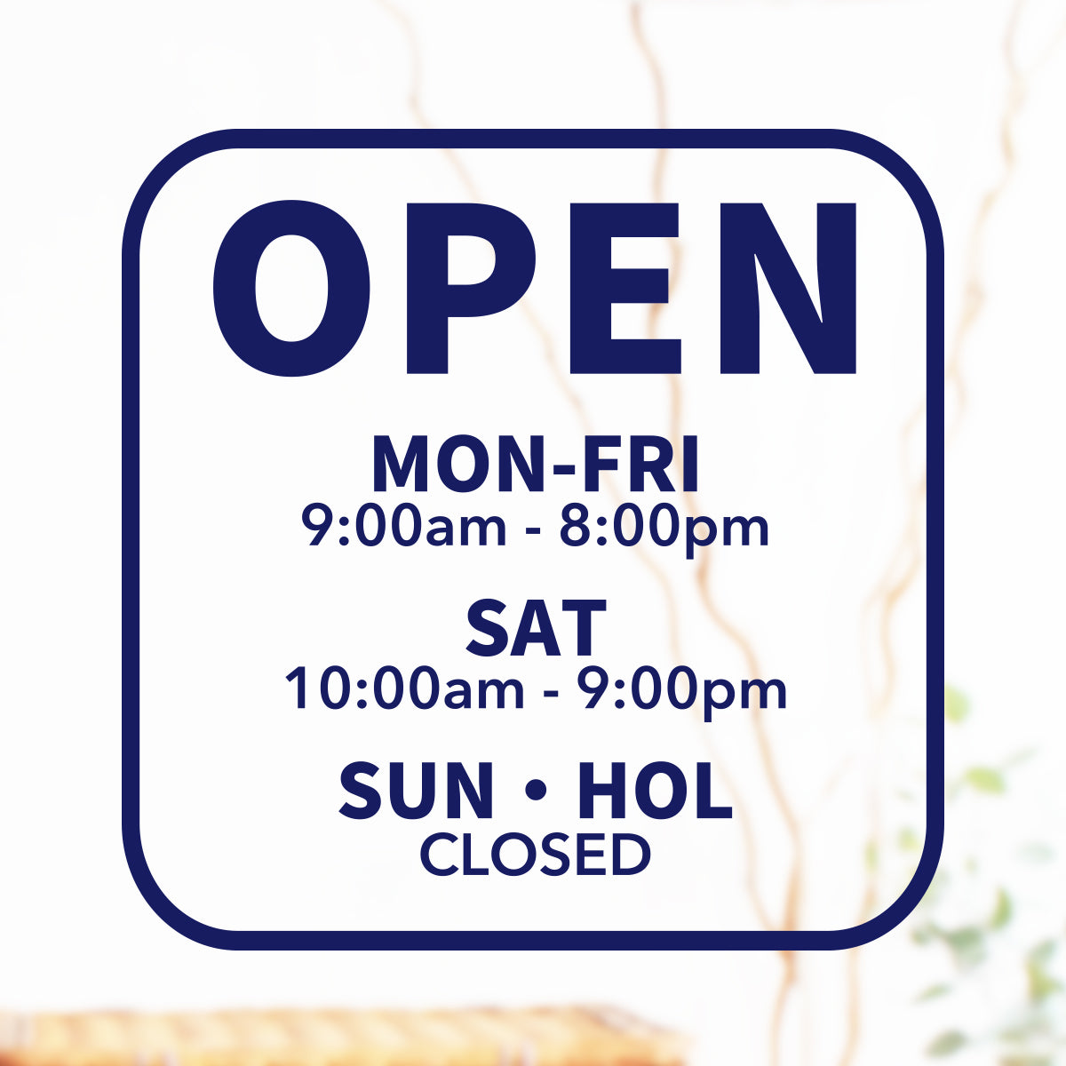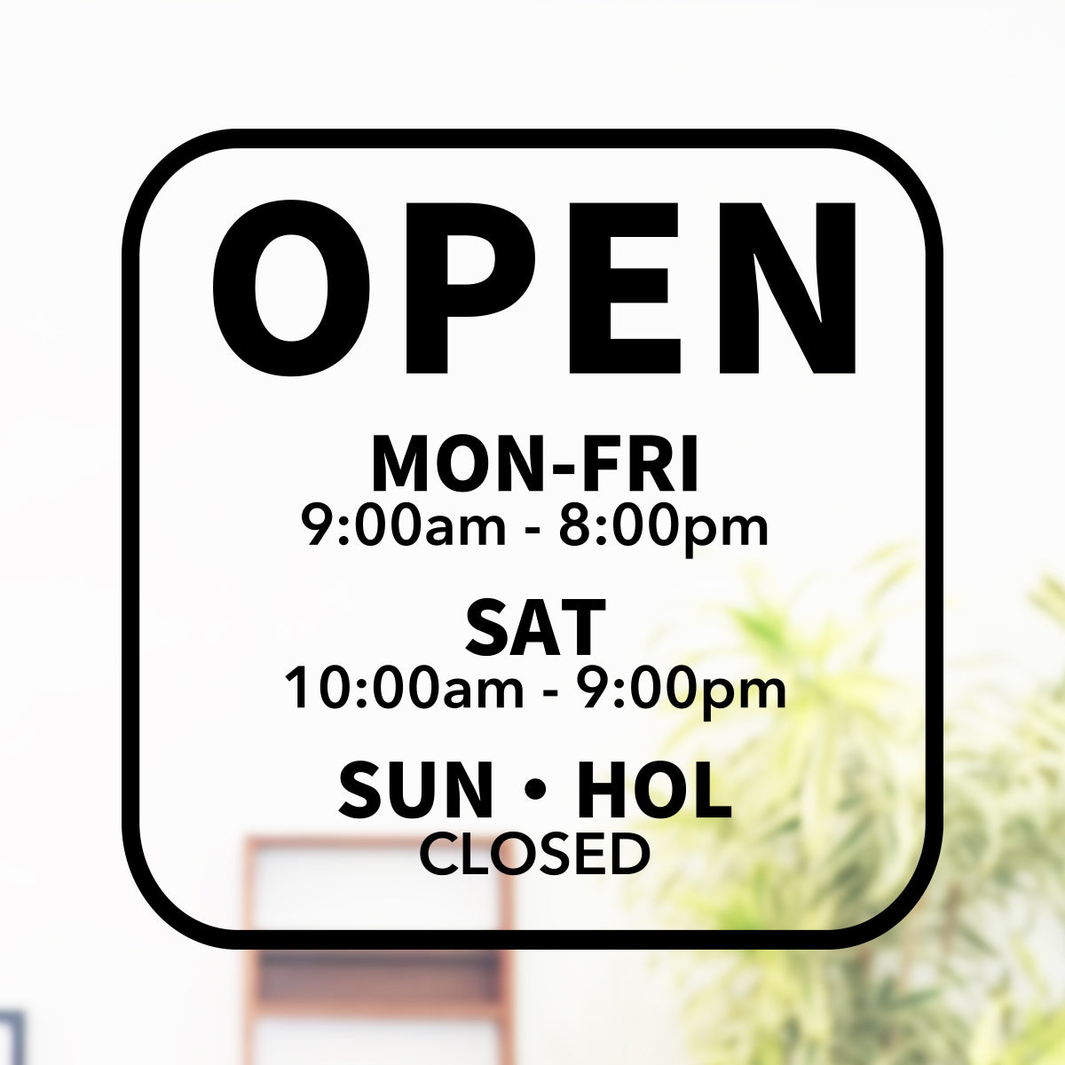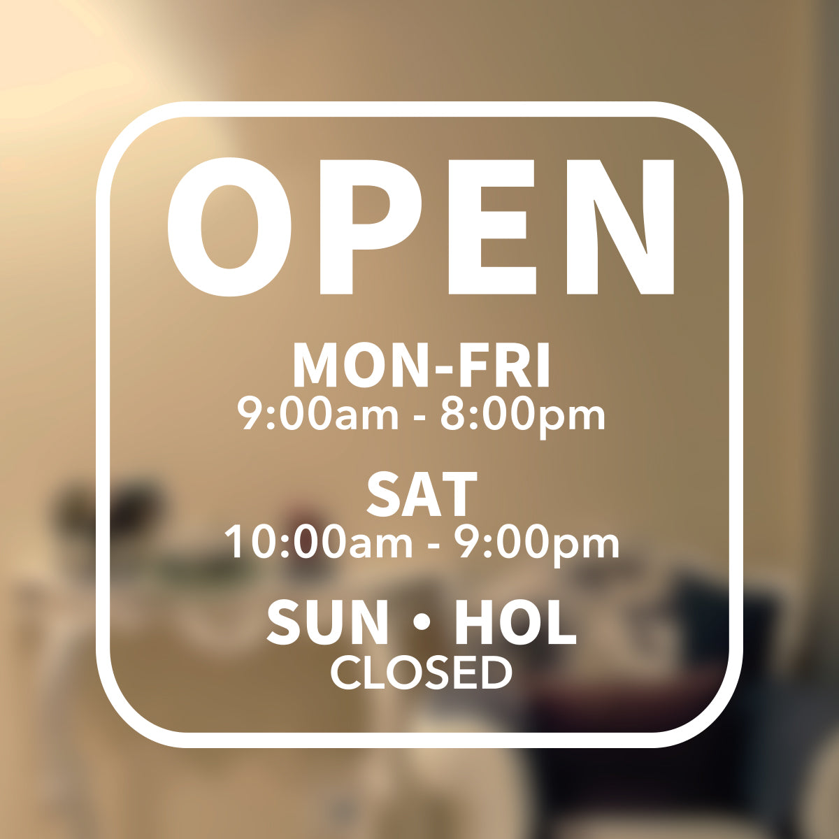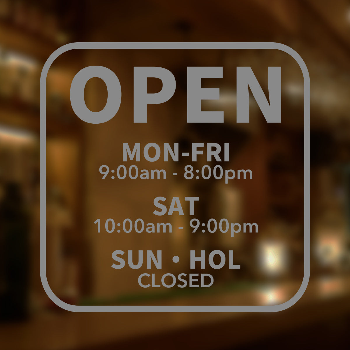 店舗やオフィスの営業時間をシンプルでスタイリッシュなステッカーで案内しませんか?