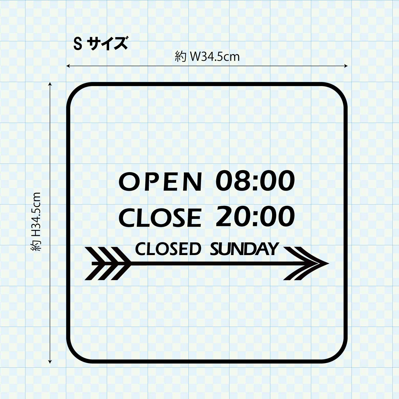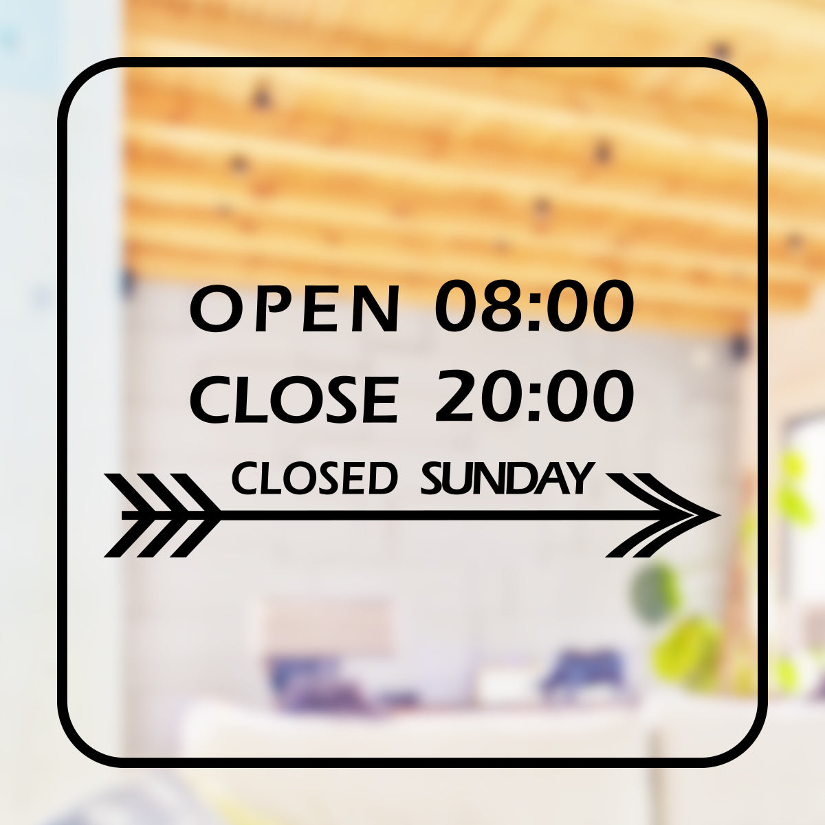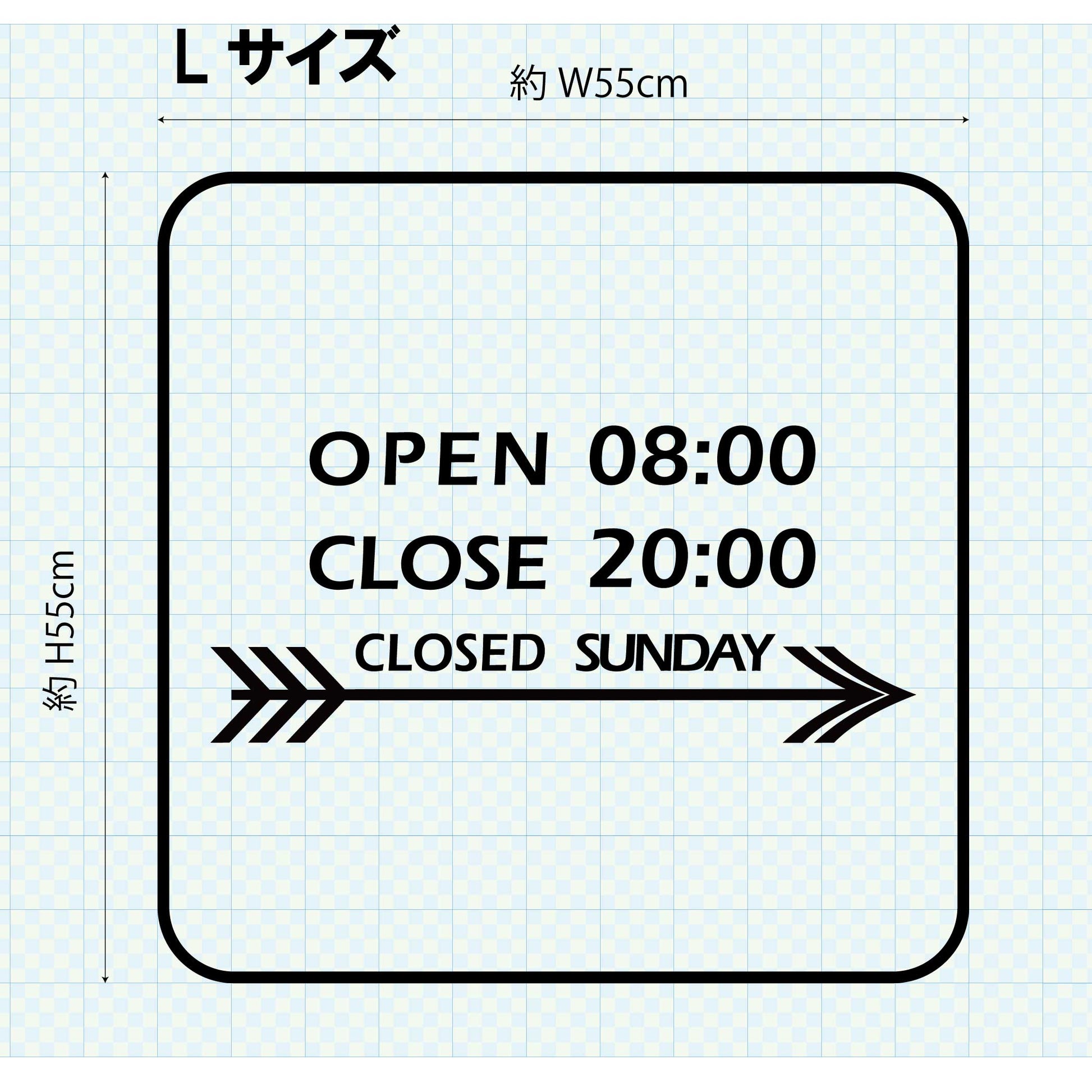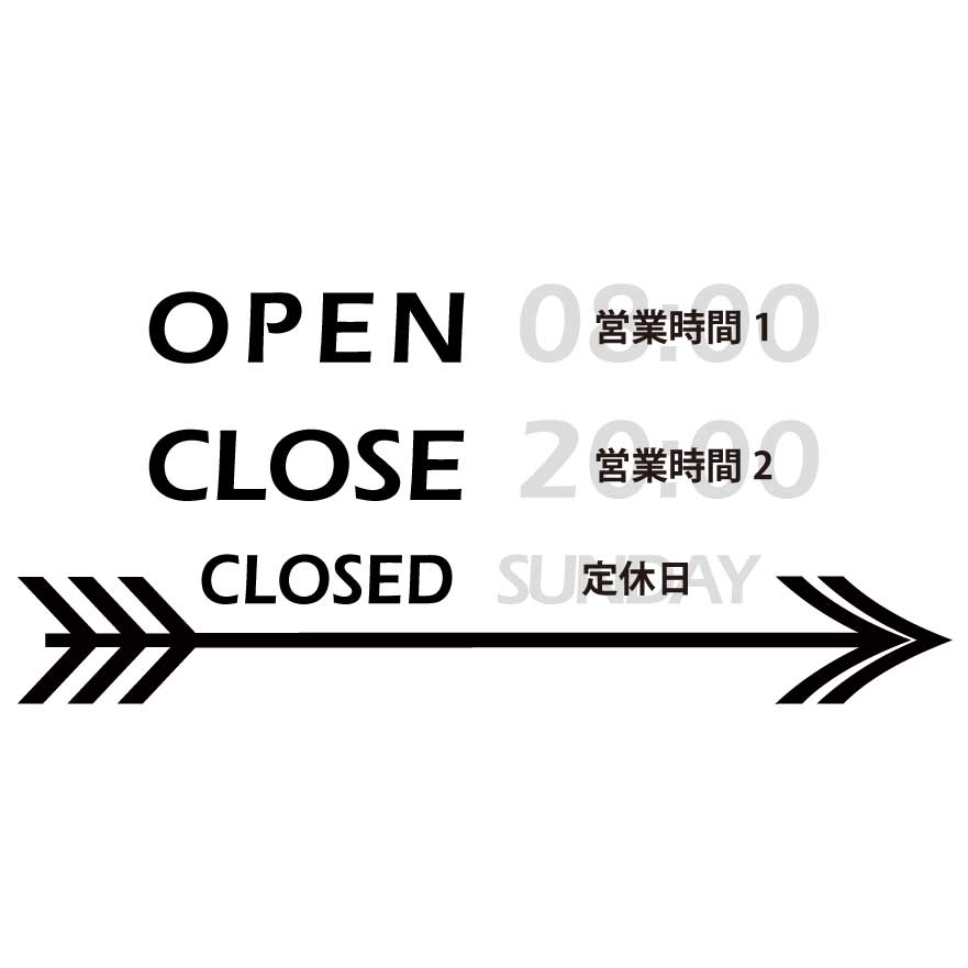 矢印デザインがカッコイイ営業時間ステッカーです。