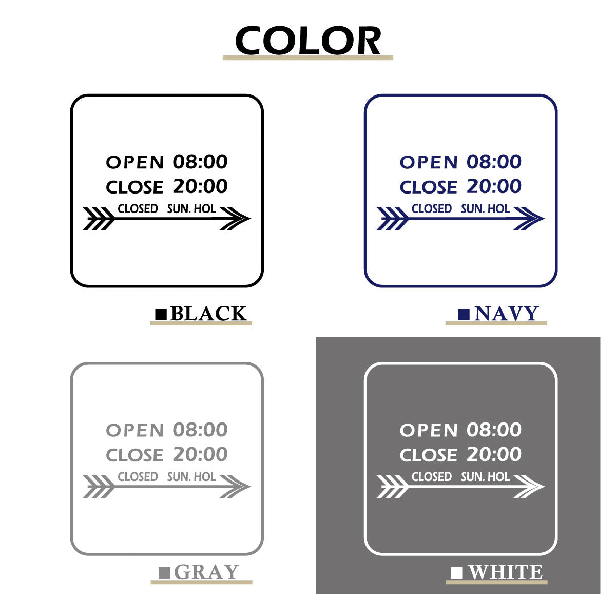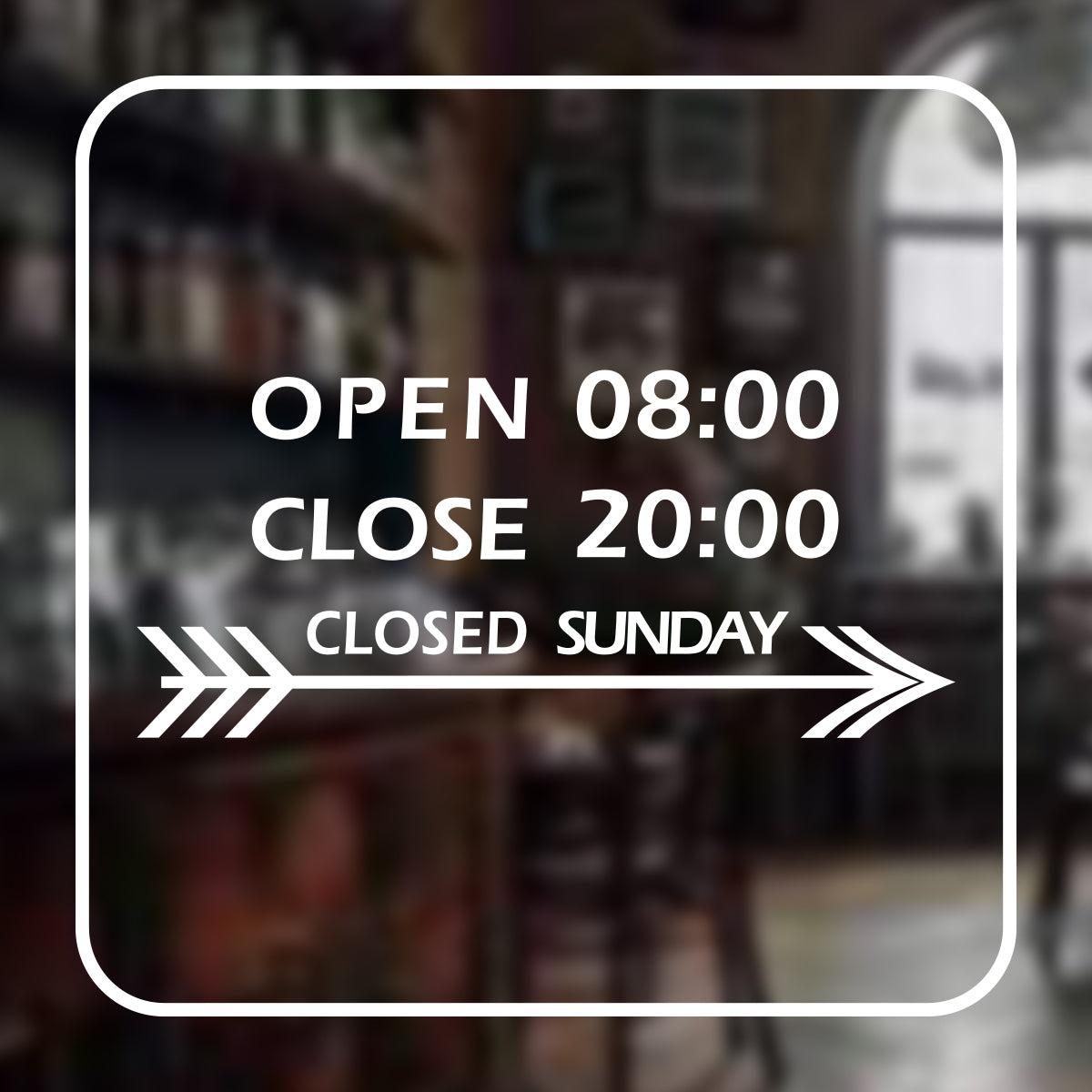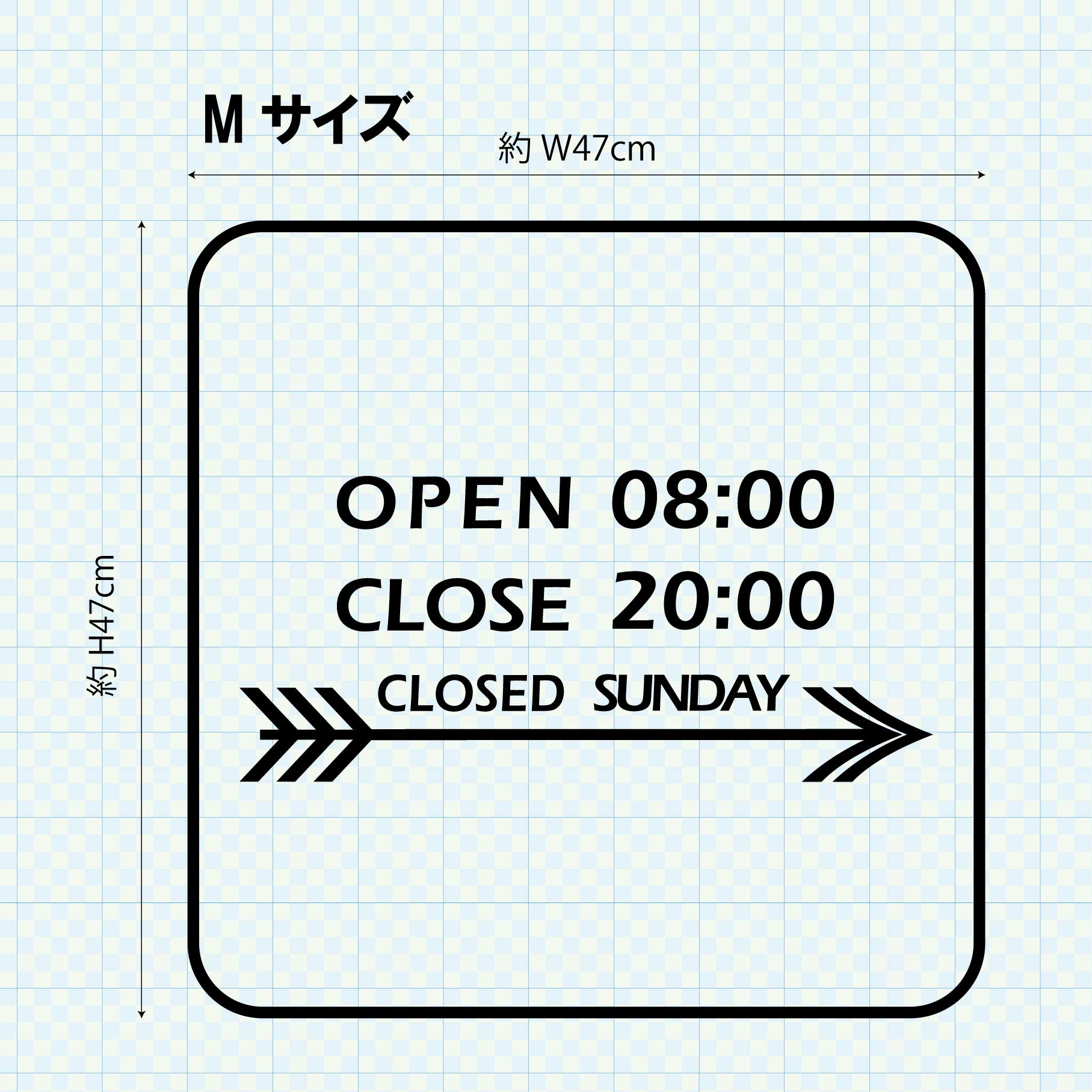 矢印デザインがカッコイイ営業時間ステッカーです。