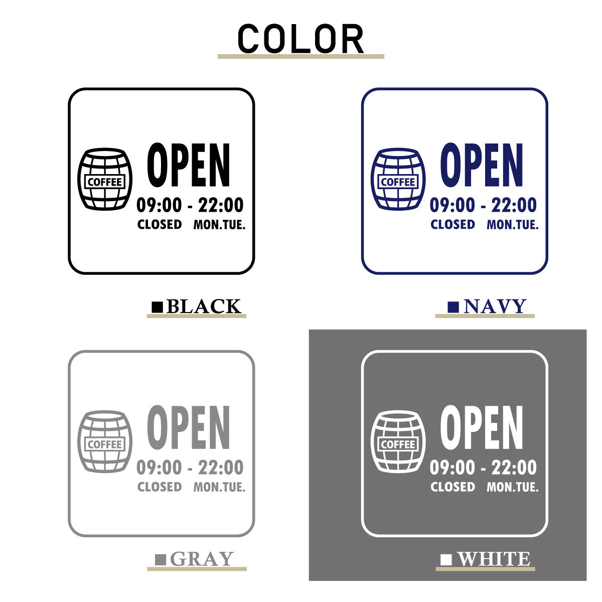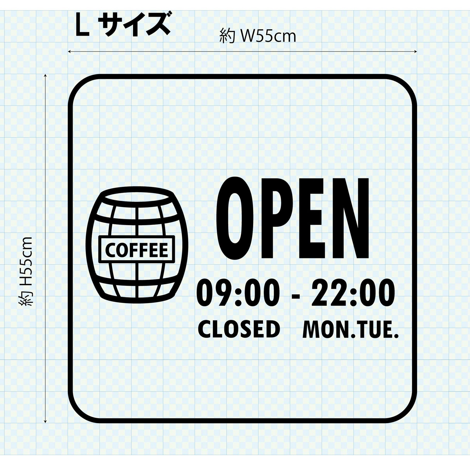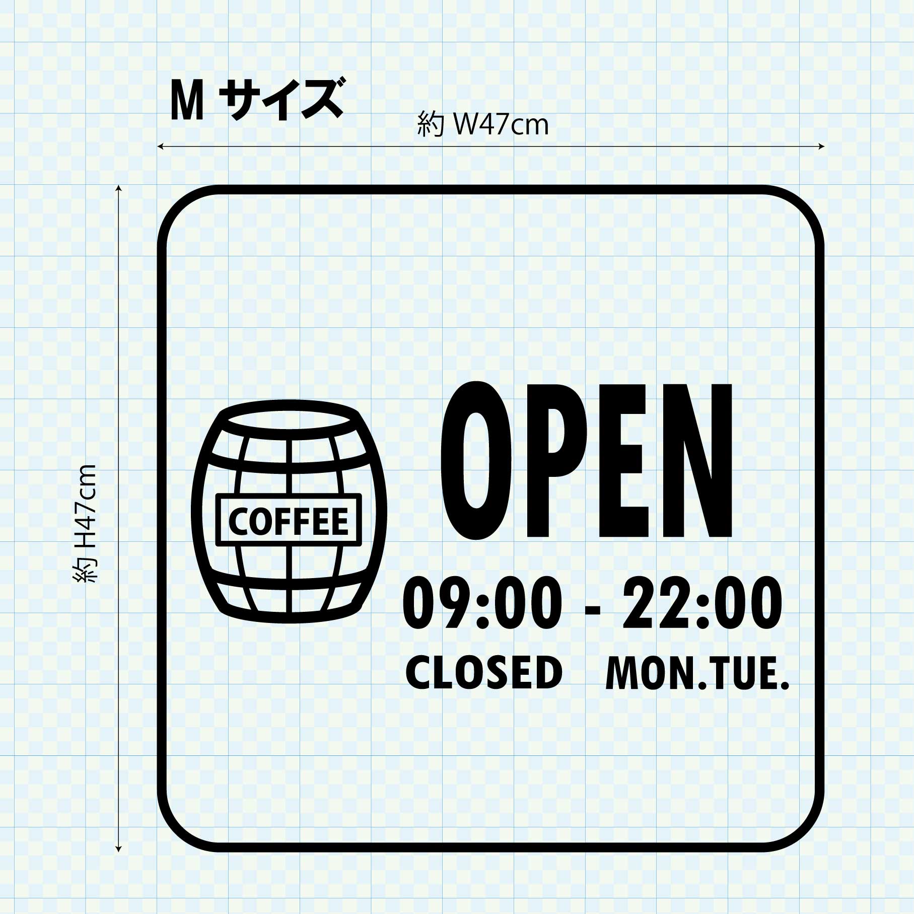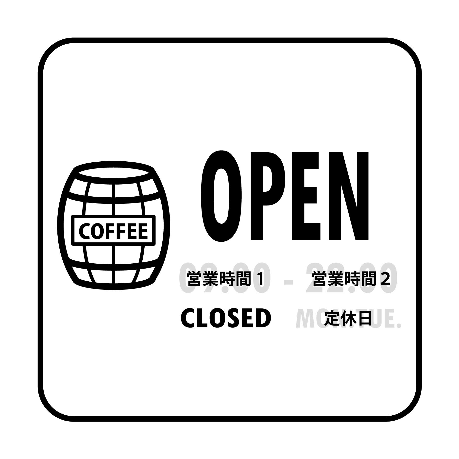 コーヒー樽デザインのステッカーで、カフェやレストランなどの施設の入り口などに貼り付けることで、簡潔に営業時間を案内することができます。