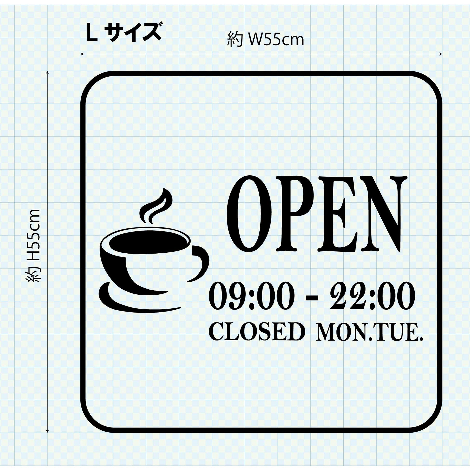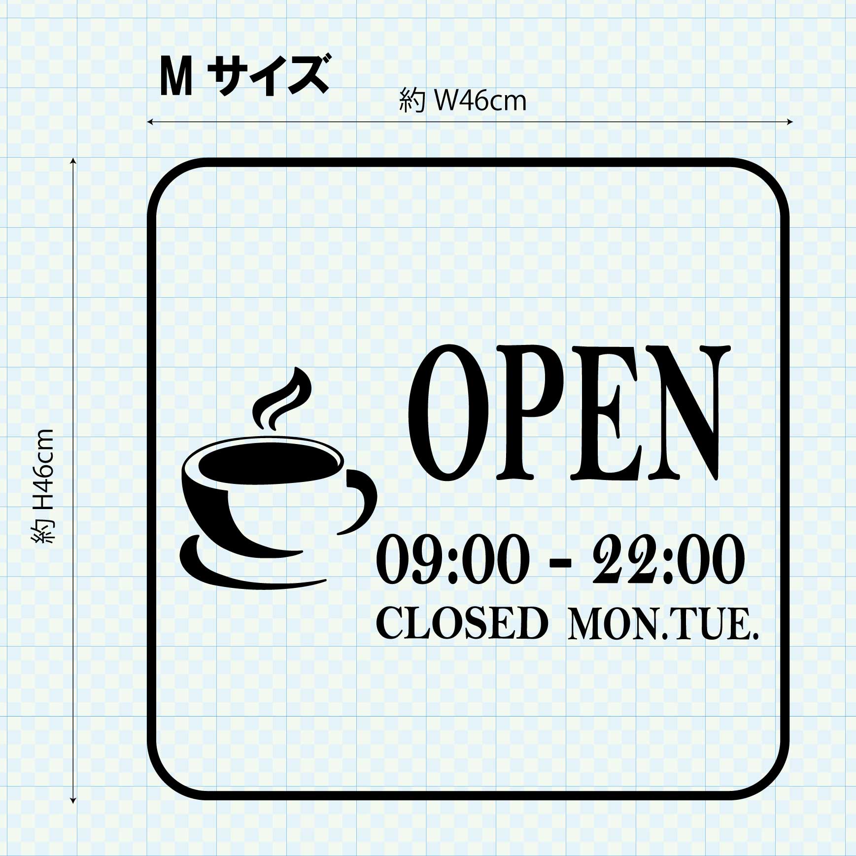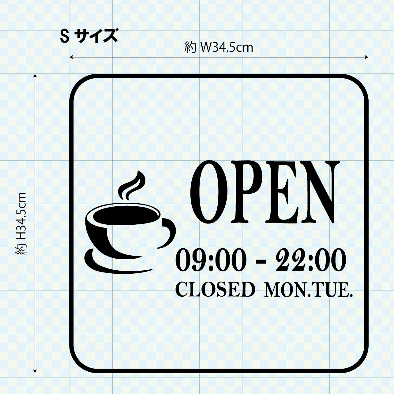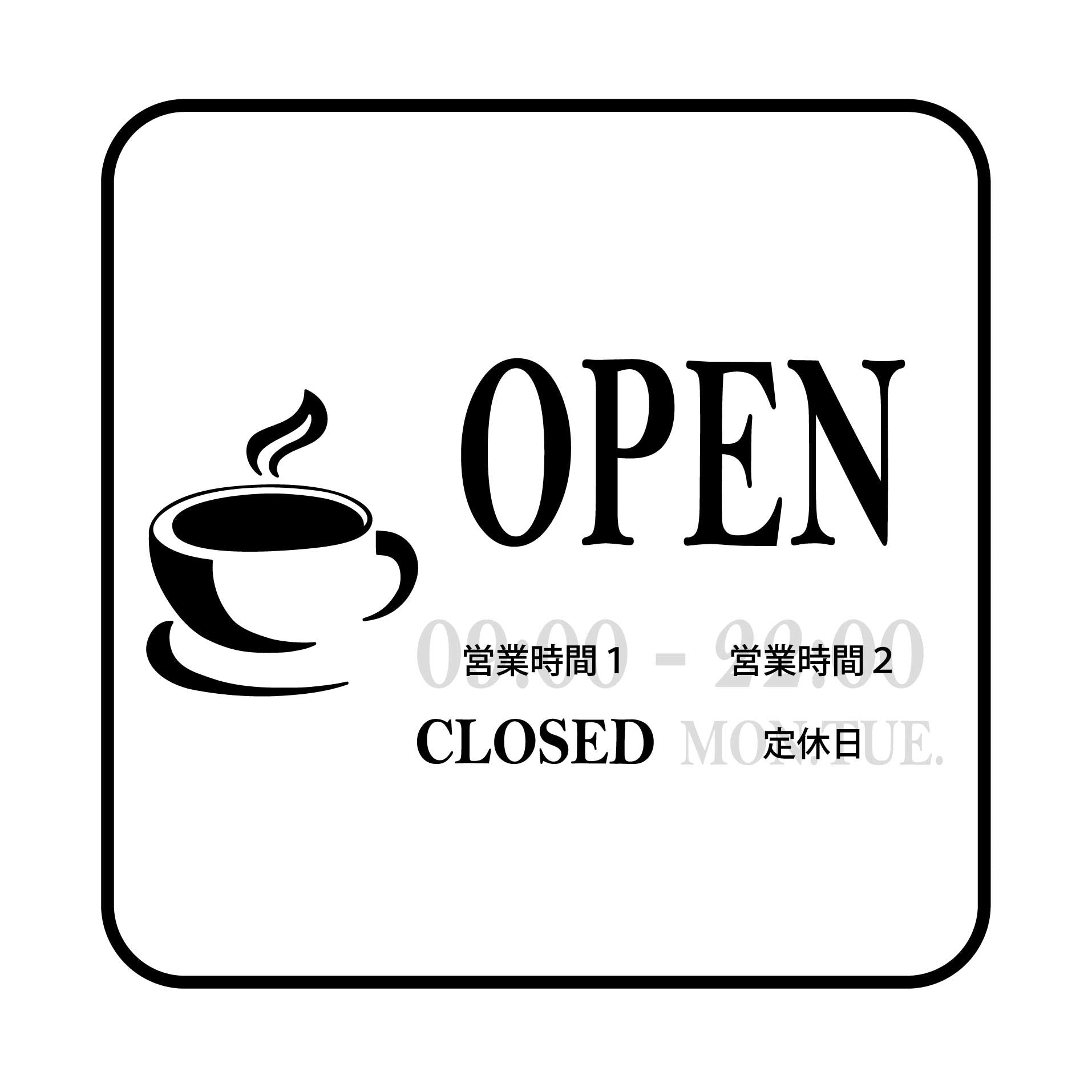 コーヒーカップをデザインしたスタイリッシュな営業時間ステッカーです。